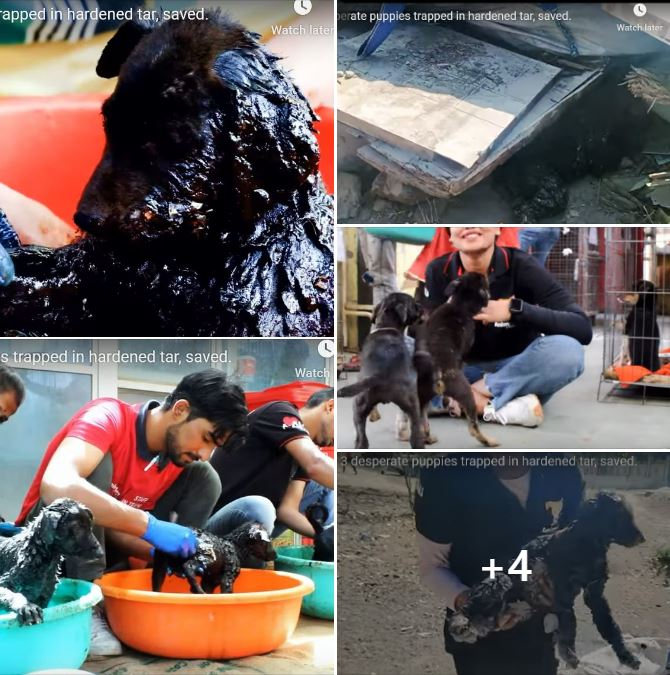 If left without rescue, these puppies would have succumbed to thirst, their struggles futile in the face of immobility. Having encountered similar situations in the past, we immediately mobilized a group of dedicated individuals to commence the arduous task of liberating the distressed little ones from the tar. Cooking oil was employed to bathe them, with numerous oil changes required due to the severity of the contamination.