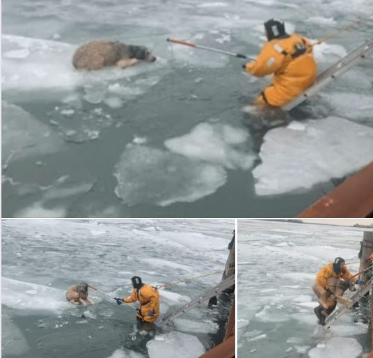 With a sense of urgency, John swiftly scooped up the frightened dog and embarked on the journey back to safety. Mindful of the treacherous conditions, he took every precaution to prevent any mishap that could endanger both himself and the puppy. After what felt like an eternity, John successfully reached the shore, the puppy secure in his arms.