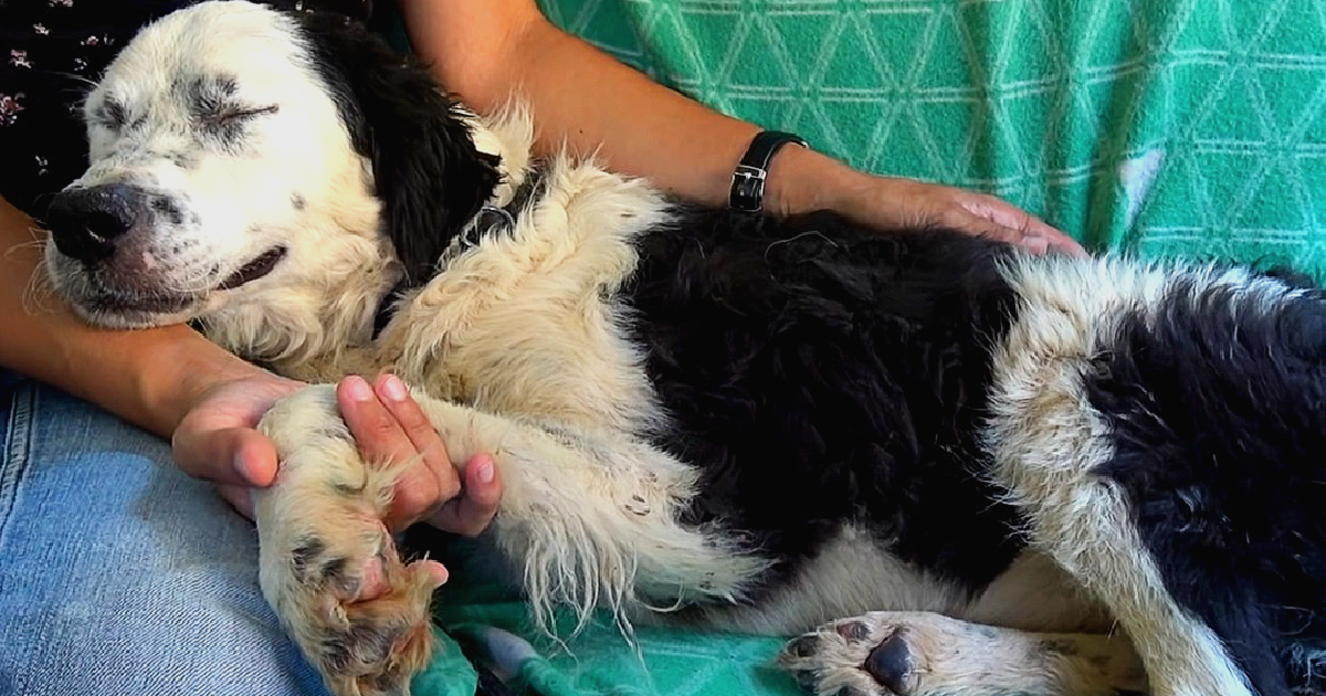 Bella and the rescuers hurry to the doctor. She is sitting next to a new human acquaintance in the car, her face expressionless. She understands that receiving love will change her life.Bella was really worn out. Employees at the shelter claim that Bella had trouble falling asleep. She struggled to feel secure in her kennel. As she sits there getting petted, her eyes start to close. It’s nice to see her finally unwind.